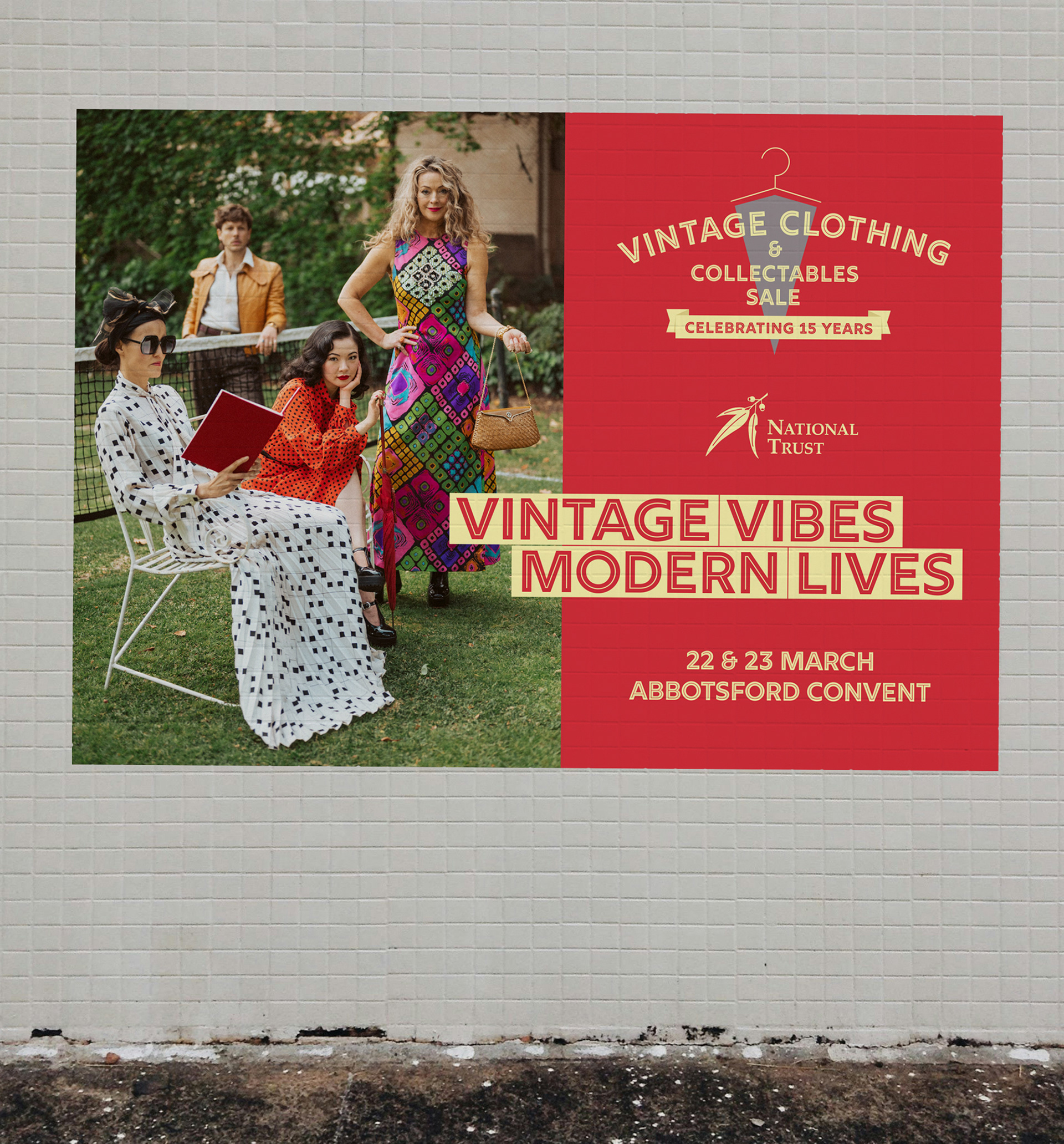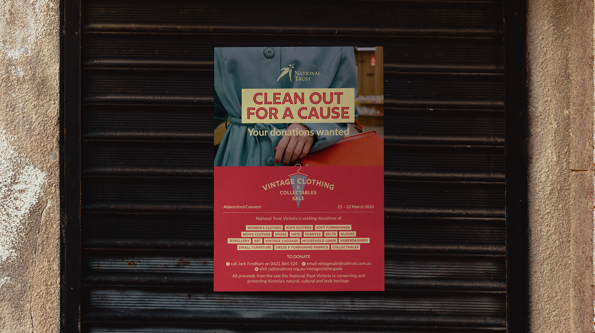 The annual Vintage Clothing & Collectables Sale has become one of National Trust Victoria's most popular events, attracting thousands of visitors. With a new series of photos and increased outdoor advertising in 2024, the sale has finally solidified a recognisable brand to carry it into the future.