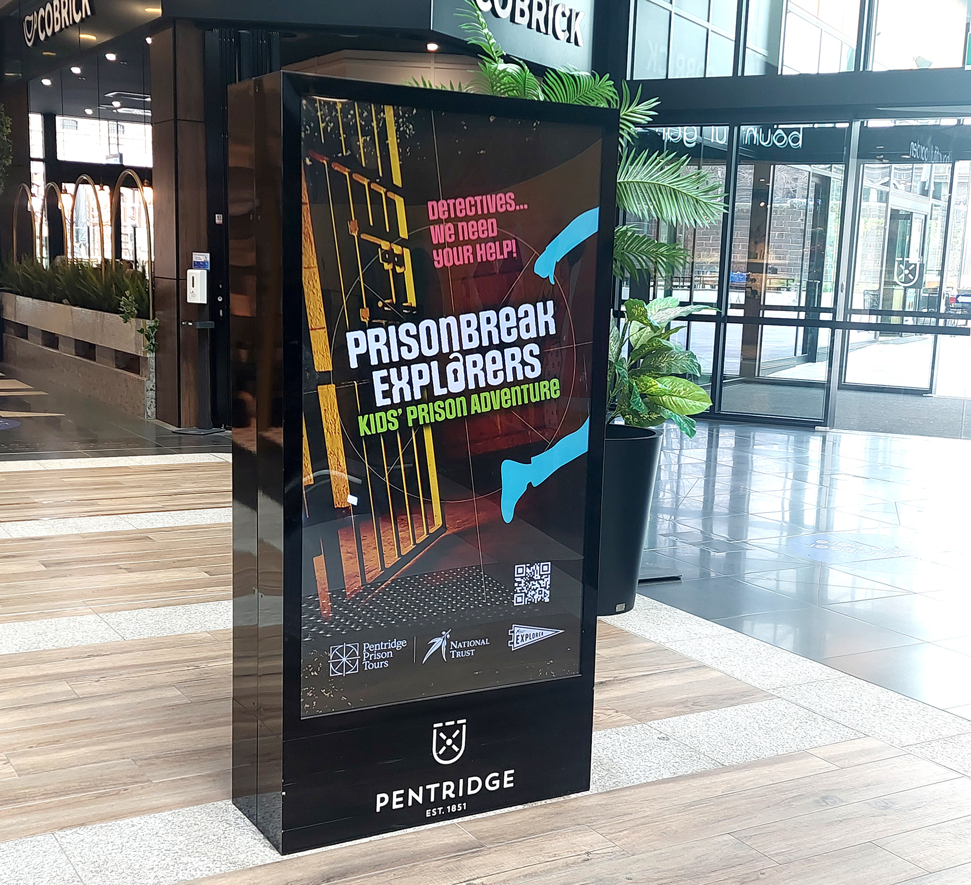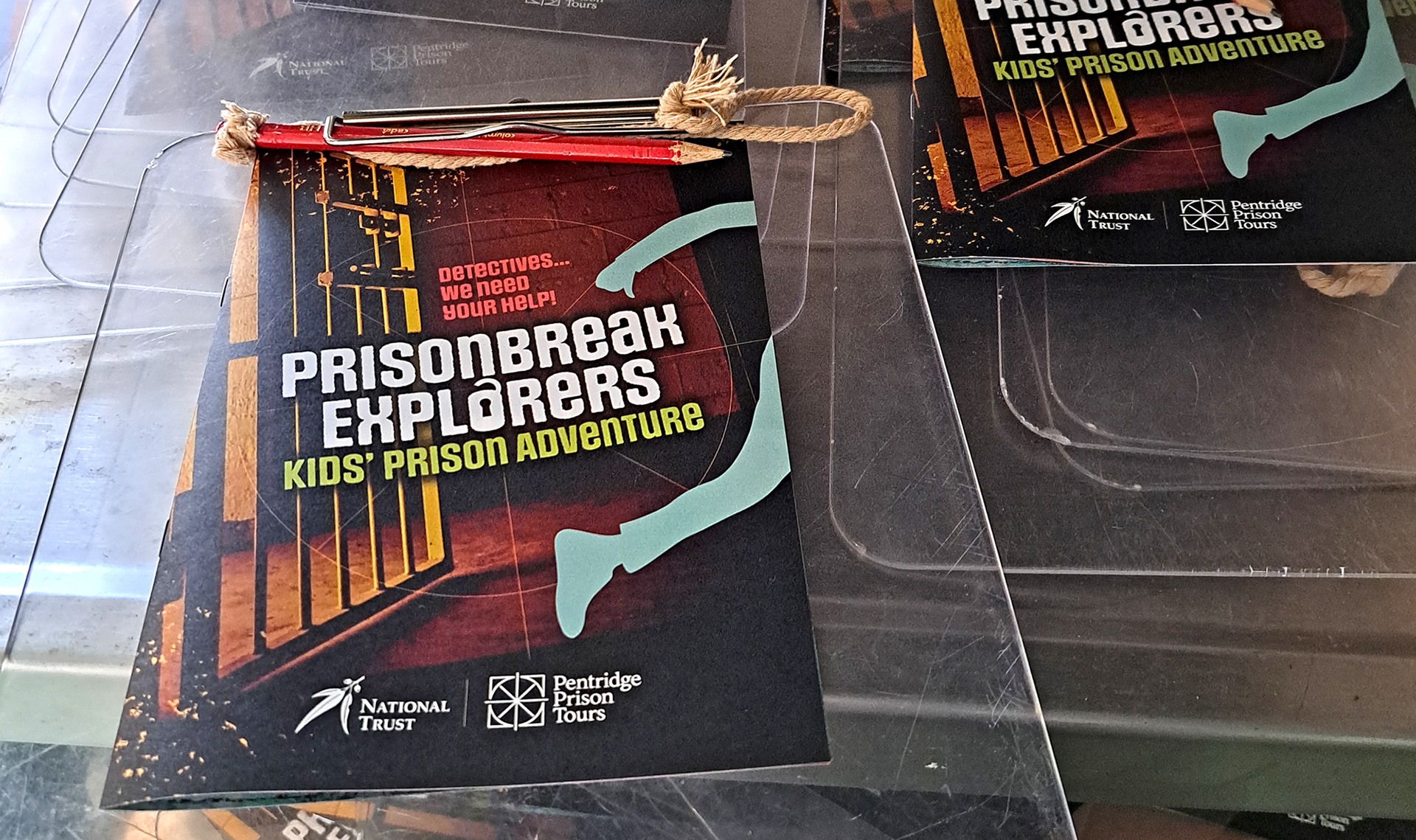 An on-site children's interactive activity called Prisonbreak Explorer was launched in conjunction with the tours, which involves children finding clues to solve a mystery in the cellblocks. Branding was applied to an activity booklet, poster, postcard and an OoH digital display ad. It loosely references existing PPT branding, but needed more colour and jazz, less grey and grown-up.